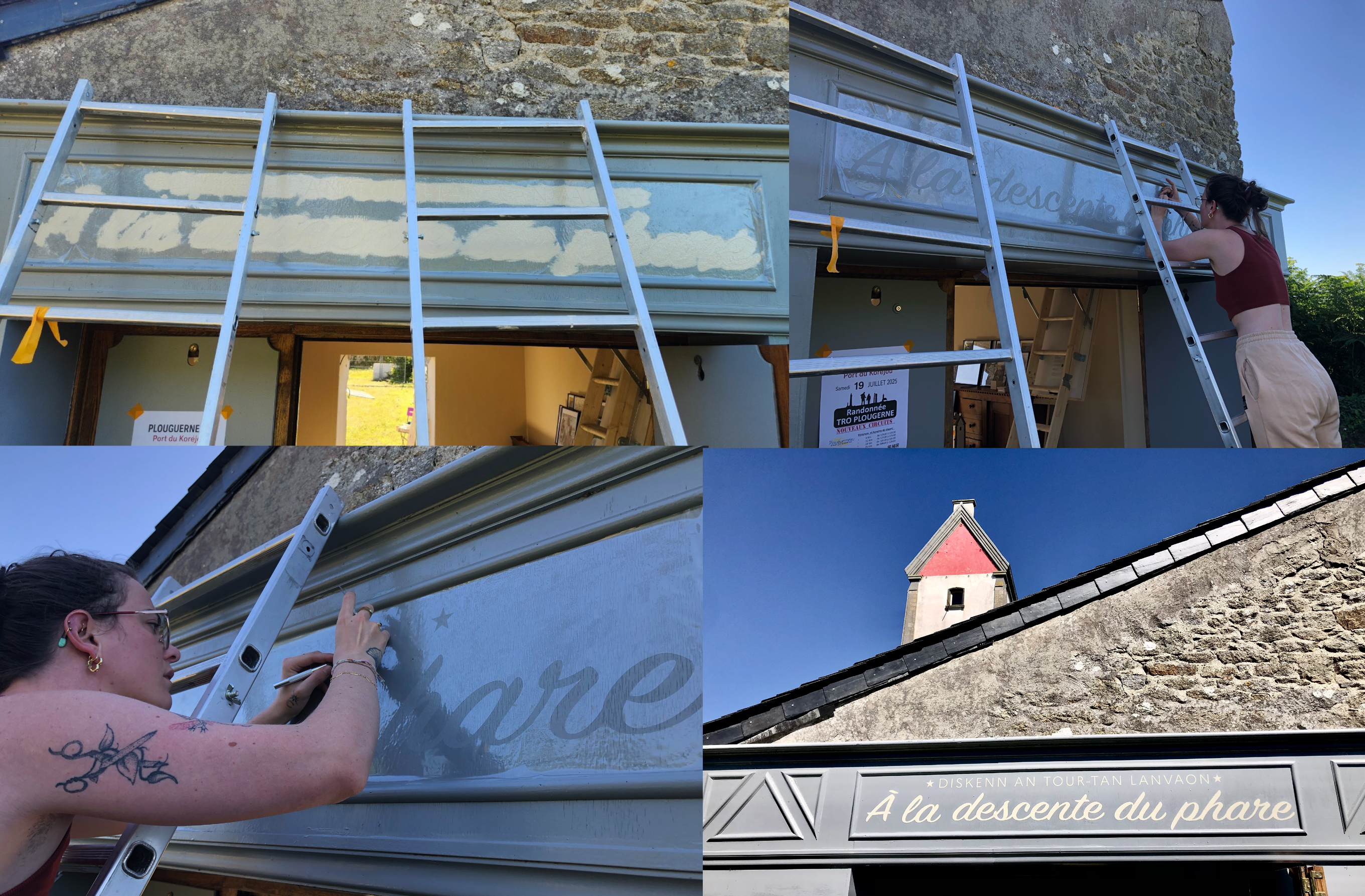 photos de Ohanna Corre, petite-fille de Soizic, vissant la touche finale sur