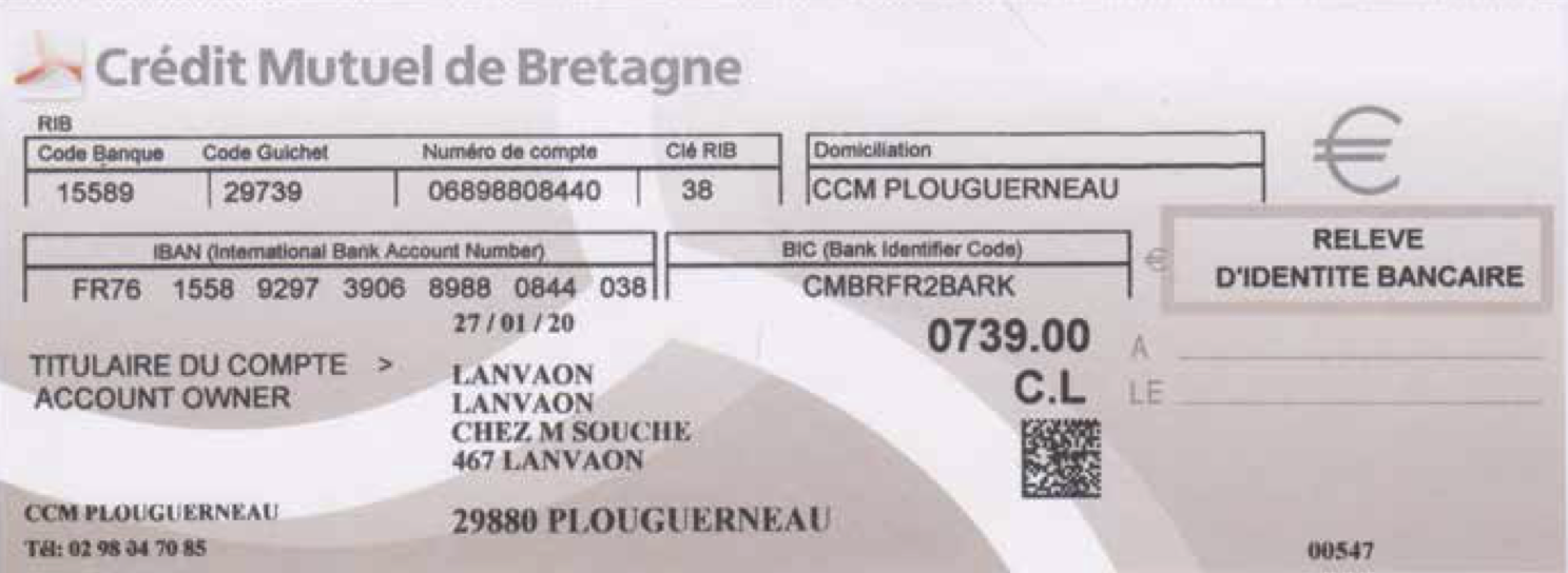 IBAN FR76 1558 9297 3906 8988 0844 038